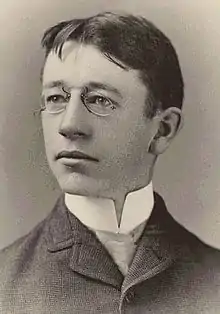 Sanborn became a close friend of philosopher and fellow poet Santayana, with whom he graduated in the class of 1886. Freshmen were seated alphabetically, so the two found each other side-by-side in several classes in addition to sharing in the editorship of Harvard literary magazines and membership in several social groups,[1] which included Art Club, Chess Club, the OK Society and the Everett Atheneum.[8] In December 1885, they shared the stage in the Hasty Pudding Theatrical, Robin Hood, followed by the production Papillonetta the following spring.[9] Sanborn's interest in history led him to win the Bowdoin Prize for a dissertation on The Rights and Duties of a Biographer in his junior year.[8] As a graduating senior, he was selected to write the class ode and presented it as part of the festivities on Class Day.[10]