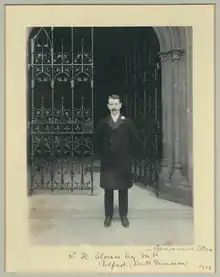 In July 1902, the sitting MP for South Belfast, William Johnston, died. Johnston, an evangelical Orangeman, was first elected in 1868, defeating a millowner as the candidate of the United Protestant Working Men's Association of Ulster.[2] While he later sat unopposed as an official Conservative, he established a reputation as a supporter of labour protection, tenant right, the secret ballot and woman's suffrage[3][4][5]