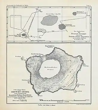 - ↑ P.E. Baker (1967). "Historical & Geological Notes on Bouvetoya" (PDF). British Antarctic Survey Bulletin (13): 71–84. Archived from the original (PDF) on 2012-03-16.