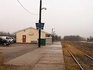 Thompson station is a station stop in Thompson, Manitoba, Canada. The stop is served by Via Rail Canada's Winnipeg – Churchill train.[1][2] The station is located about 1 kilometre (0.62 mi) from downtown near the industrial park.