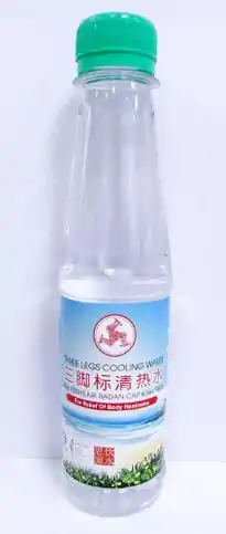 Three Legs Cooling Water (Chinese: 三脚标清热水) is a traditional Chinese medicine (TCM) drink produced by Wen Ken Group. A flagship product of the company, the drink tastes like mineral water and has been around since 1937 when Wen Ken Group was first established.