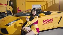 A scene in the music video where Momoland's Jane appears as a delivery worker for Momo Express.