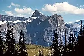 Thunderbird Mountain (8,805 feet (2,684 m)) is located in the Livingston Range, Glacier National Park in the U.S. state of Montana.[4] Thunderbird Mountain is situated on the Continental Divide. Thunderbird Glacier is located immediately northeast of the mountain.