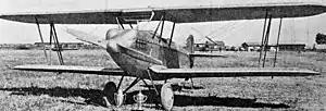 The prototype's OX-5 water-cooled engine was cleanly cowled, with its 43 US gal (36 imp gal; 160 L) fuel tank immediately behind it and its radiator centrally positioned on the upper wing underside. There were two open cockpits in tandem. The forward one seated either two passengers side-by-side or a trainee pilot, positioned largely under the upper wing. The pilot sat, sightly raised, in the rear cockpit. The stagger and a gentle cut-out enhanced the field of view from both cockpits. Behind the engine the fuselage was a trapezoidal section girder structure of welded steel tubes, tapering rearwards and with a rounded decking behind the cockpits.[2][1]