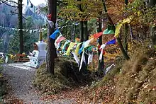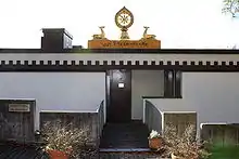 The Tibet-Institut Rikon is the only monastery outside Asia that was founded on behalf of the Dalai Lama. It was inaugurated on 9 November 1968 under the name „Kloster zum Rad der Lehre„ (literally: Monastery for the Wheel of Teaching) - but as a “Monastic Tibet Institute,” as the founding of a monastery was not permitted under the then Swiss federal constitution.[3] The Dalai Lama was also not present at the inauguration: the Federal Council banned him from entering the country.[3] He visited the monastery for the first time in 1973.[4][3] The monastic community in Rikon claims to be the only Tibetan monastery in the West.[5] The monastic Tibet Institute in Rikon was established according to the advice and under the patronage of the 14th Dalai Lama, who emphasized the importance of monasteries for Tibetan people in exile. The Dalai Lama sent an abbot and four monks to Rikon from India. The institute's buildings were designed by architect Ueli Flück (Baden AG), and the foundation stone was laid on 29 July 1967. On 9 November 1968 the monastic Tibet Institute was consecrated by the Dalai Lama's two principal teachers, Trijang Rinpoche and Ling Rinpoche,[6] under the name "Kloster zum Rad der Lehre" (literally: Monastery for the Wheel of Teaching).[4] On 8 April 2010 the 14th Dalai Lama visited the monastery community in Rikon for the 14th time, and was warmly received by Tibetan people, on the occasion of the 50th anniversary of the establishment of Tibetan refugees in Switzerland.[7] The 14th Dalai Lama visited the monastic community again in 2013, 2015 and 2016.[6]