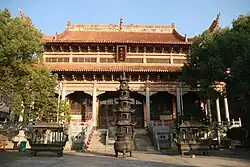 Now the existing main buildings include Paifang, Shanmen, Four Heavenly Kings Hall, Mahavira Hall, Kshitigarbha Hall, Liuli Hall (琉璃宝殿) and ring-rooms.[3][4]