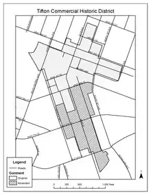 - 1 2 3 4 Carolyn Brooks (November 26, 1985). "National Register of Historic Places Inventory/Nomination: Tifton Commercial Historic District". National Park Service. Retrieved August 31, 2016. with 21 photos from 1984