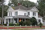 • the former Pope House-Lankford Manor (1892), 401 Love Avenue, in recent years the Three Graces Manor bed and breakfast.[3] Built as a single-family house, it was converted into a boarding house and restaurant in 1934, with enclosure of its two-story porch. Includes Queen Anne-stylistic elements including use of pedimented gables and decorative wood shingles.[2]