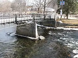 The Tilton Island Park Bridge is a foot bridge in Tilton, New Hampshire. It spans a portion of the Winnipesaukee River just east of downtown Tilton, providing access to Tilton Island Park, located on an island in the river. Built in 1881, it is a rare surviving example of a bridge with cast iron components, designed by a distinctive patent issued in 1858 to Lucius Truesdell. The bridge was listed on the National Register of Historic Places in 1980.[1]