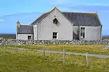 Timsgarry is home to the Baile na Cille Church,[4] and is situated within the parish of Uig.[5] Timsgarry used to have its own chapel, named Capail Mor, further to the west of the present church, which was built in 1724 near to the site of an earlier church, known as Capail Beag.[5][6] The former manse is still present, with the churchyard.[5][7]