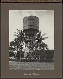 The water tower was built in 1908 and owned by NV. Water Leiding Maatschappij Ajer Bersih company, which was established in 1905 and belonged to the Dutch East Indies government.[1]