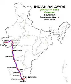 - ↑ "Hapa-Tirunelveli train to run twice a week". Indian Express. 28 April 2010.
