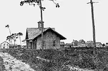 This community was originally called Sand Point, and a post office was established in 1859, although it closed a few months later. Henry T. Titus arrived in 1867, intending to build a town on land owned by his wife, Mary Hopkins Titus, daughter of a prominent planter from Darien, Georgia. He laid out roads and in 1870 erected the Titus House, a large, one-story hotel next to a saloon. He also donated land for four churches and a courthouse, the latter an effort to get the town designated as county seat.[8]