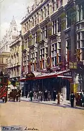 The Tivoli Theatre of Varieties was a popular English theatre based in the Strand, West London. It was designed by Charles Phipps and was built during 1889–90 at a cost of £300,000. It was constructed on the former site of the Tivoli Beer Garden and Restaurant.[1] In the consortium that financed the project was the actor Edward O'Connor Terry.[2] The hall opened on 24 May 1890 and was located opposite the Adelphi Theatre.[3]