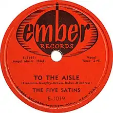 "To the Aisle" is a 1957 song recorded by The Five Satins with songwriting credits to group members Jim Freeman, Jessie Murphy, Bill Baker, Tommy Killebrew, and John Brown. The arrangement included an alto saxophone and an oboe played in harmony during the bridge and the oboe at the song's closing, very unusual for the time.