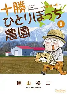 Written and illustrated by Yūji Yokoyama, Tokachi Hitoribocchi Nōen began in Shogakukan's Weekly Shōnen Sunday on November 29, 2017.[2] Shogakukan has collected its chapters into individual tankōbon volumes. The first volume was released on April 12, 2019.[1] As of September 9, 2023, 13 volumes have been released.[3]