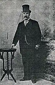 Allen died on 5 April 1903, at the Baptist Sanitarium in St. Louis, Missouri, at the age of 62, and was buried at St. Louis's Bellefontaine Cemetery.[24][25] He had only two weeks earlier announced his engagement to Miss. Tillie Hartgrave.[26] There were various claimants to his estate including his 21 year old fiancée Tillie Hartgrave, though he clearly willed part of his estate to his daughter Mary Taylor and her sister, Mrs. J. H. Newey of Birmingham, England.[27][28]
