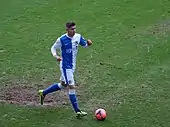 He made his debut in a 1–1 draw against Derby County, as a 77th-minute substitute for Alex Marrow.[36] Two days later, Cairney made his full debut for the club in an eventful League Cup clash with Carlisle United, scoring one and providing one assist, before being sent off for the first time in his career after two bookable offences.[37] Cairney equalised for Blackburn in a 5–2 victory over Barnsley on 24 August, opening his Championship account for the club.[38] Since joining Blackburn Rovers, Cairney established himself in the first team there, having quickly made an impact.[39][40] He then set up two goals on 1 January 2014, in a 2–1 win over Leeds United.[41]