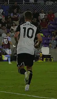 Cairney made his Fulham debut, where he started and played the whole game, in a 1–1 draw against Cardiff City.[70] In a follow-up match on 15 August 2015, he scored his first goal for the club in a 2–1 defeat at home to Brighton & Hove Albion on 15 August 2015[71] and then scored again in a 2–1 loss against Hull City four days later on 19 August 2015.[72] Despite the defeat, he was named the club's Man of the Match.[73] His goal against Brighton & Hove Albion earned him August's Goal of the Month.[74] He then scored again on 19 September 2015, in a 3–2 loss against Sheffield Wednesday.[75] However, in a 3–0 loss against Wolverhampton Wanderers on 29 September 2015, Cairney was sent–off for "a two-footed tackle" on Adam Le Fondre in the 35th minute.[76] After serving a three match suspension,[77] he regained his first team place since returning and played the most of the season in the right-hand side of midfield.[78] Cairney then ended his four months goal drought when he scored and set up a goal, in a 3–1 win over rivals, Queens Park Rangers on 13 February 2016.[79] Following the match, he named Man of the Match.[80] After scoring three more goals, including a brace with a 3–0 win over Charlton Athletic on 20 February 2016,[81] his performance throughout February earned him a Championship Player of the Month.[82]