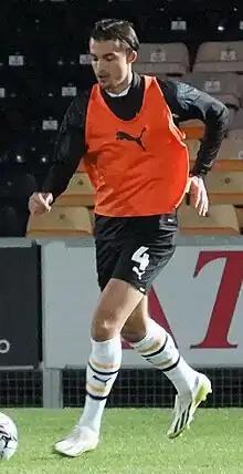 On 22 September 2020, he joined EFL League Two side Cheltenham Town on loan until January 2021.[10] He made his first Football League appearance for Cheltenham in a 2–0 win over Crawley Town at Whaddon Road on 10 October.[11] He made 14 appearances in all competitions for Cheltenham before returning to Cardiff in January 2021, winning praise from Cheltenham manager Michael Duff for his dedication and enthusiasm.[12][13] He had started just three league games for Cheltenham, playing largely in an attacking central midfield role, though Cardiff manager Neil Harris noted that Cheltenham had been in excellent form.[14] He had also been used at right-back towards the end of his loan spell and later acknowledged that he had learnt a lot despite initially being disappointed with the amount of gametime he had at Whaddon Road.[15]