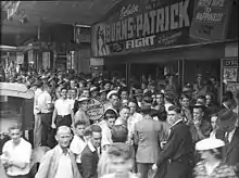 The crowd gathering at the Lyric Theatre, Sydney for the screening of the Burns-Patrick Fight, 1946.