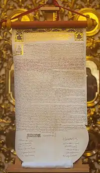 Tomos of autocephaly of the Orthodox Church of Ukraine, signed by the Ecumenical Patriarch Bartholomew I on 5 January 2019.