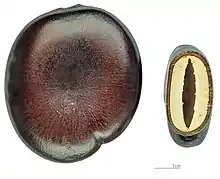 Paʻanga is the Tongan name for Entada phaseoloides, also called the box bean or St. Thomas's bean, a bean-like vine producing large pods with large reddish-brown seeds. The seeds are roundish, up to 5 cm diameter and 1 or 2 cm thick. When strung together they are used as anklets, part of the kailao dance costume. They were also used as playing pieces in an ancient disc-throwing game, lafo.[1]