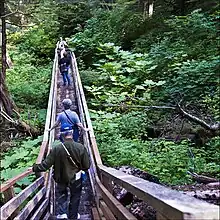 After the creation of the Tongass National Forest, the Central Council of the Tlingit and Haida Indian Tribes of Alaska formed to challenge the federal government's rights to the land in 1935.[5] In Tlingit and Haida Indians of Alaska v. United States, the court found Alaskan natives held established aboriginal title by their "exclusive use and occupancy of that territory from time immemorial".[6] The court found the Alaska Treaty of Cessation between Russia and the United States did not extinguish aboriginal title to the land, and that the creation of the Tongass National Forest constituted a taking of land from the Tlingit and Haida. The case was finally settled in 1968 with a $7.5 million payment that valued the Tongass at about 43 cents an acre. The value was based on land value at the time of the taking in 1902, without the inflation or interest accrued in the past 66 years.[7]
