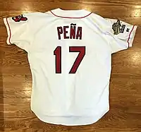 Peña caught the majority of the Indians' games in 1995 and, although his batting average dropped to .195, he hit a walk-off home run with two outs in the bottom of the 13th inning of Game 1 in the 1995 American League Division Series that helped propel the Indians to a three-game sweep of the Boston Red Sox.[30] The Indians made it all the way to the 1995 World Series before losing to the Atlanta Braves in a six-game series.[31] Peña once again filed for free agency at the end of the season, signing a contract with the Chicago White Sox.[1] He played with the White Sox until August 1997 when he was traded to the Houston Astros. At the end of the year, he retired as a player at the age of 40.[1]
