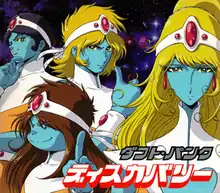 The ideas for the album's music videos formed during the early Discovery recording sessions.[13] The album was originally intended to be accompanied by "a live-action film with each song being a part of the film", according to Todd Edwards. The band decided instead to concentrate on an anime production.[34] Daft Punk's concept for the film involved the merging of science fiction with entertainment industry culture.[36] The duo recalled watching Japanese anime as children, including favorites such as Captain Harlock, Grendizer, and Candy Candy.[37] All three brought the album and the completed story to Tokyo in the hope of creating the film with their childhood hero, Leiji Matsumoto, who had created Captain Harlock.[37][36] After Matsumoto joined the team as visual supervisor, Shinji Shimizu had been contacted to produce the animation and Kazuhisa Takenouchi to direct the film. With the translation coordination of Tamiyuki "Spike" Sugiyama, production began in October 2000 and ended in April 2003.[36] The result of the collaboration was an anime film, Interstella 5555: The 5tory of the 5ecret 5tar 5ystem, which features the entirety of Discovery as the soundtrack.[37]