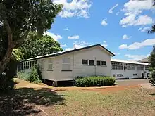 Enrolments at Toowoomba North State School grew to such an extent that in September 1951 approval was given for a three-classroom building to be erected to the west of the existing school building.[62][63] From 1950 the Department of Public Instruction introduced and developed new standard plans for school buildings. These buildings were generally high-set timber-framed structures and the understorey was used as covered play space. Introduced in 1950, the principal type was a long and narrow building with a gable roof. Stairs were often semi-enclosed, connecting the understorey to a north facing verandah running the length of the building. Classrooms opened off the verandah and had extensive areas of windows; almost the entirety of the verandah wall and the opposite classroom wall were glazed, allowing abundant natural light and ventilation. This type was the most commonly constructed in the 1950s in Queensland.[64][1]