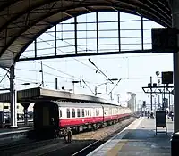 The post-war late 1940s was an era of resurgence for the railways, driven by the newly nationalised entity British Railways, which attempted to regain some of the prestige of the pre-war competition between the private railway companies. Part of this was the creation of a non-stop passenger express train from London King's Cross to Edinburgh Waverley, timetabled at 6 hours 30 minutes.[1] Launched in 1949 as the Capitals Limited, from 29 June 1953 it was known as The Elizabethan,[1] after the coronation of Queen Elizabeth II on 2 June 1953. The Peppercorn A1 class was never used on the original Elizabethan due to the lack of a corridor-type tender for crew changes on the move. The original trains were exclusively operated by the streamlined LNER Class A4.