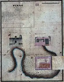 The Spanish rebuilt the tower as a two-storey rectangular building, some 80 by 60 feet. Its armament consisted of four larger and two smaller cannon, manned by a garrison of some 30 soldiers. A stone staircase gave access to the entrance to the tower on the second floor. A tablet over the door gives the name of the builders and the date of construction.