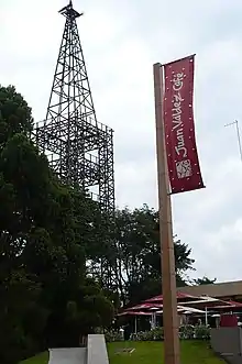 Torre de Herveo (English: Tower of Herveo), also known as Torre del Cable (English: Cable Tower), is a wooden Colombian lattice tower which was the tallest of the support towers of the Manizales - Mariquita Cableway.[1] The Torre de Herveo was in service from 1922 to 1961. It only serves as a monument and as transportation today.[1] The engineer who built the tower was James Lindsay.[2] Wood was chosen as the building material for the tower and was built with approximately 1,470 blocks of timber from the wood of Guaiac, Mahogany, Bay and Comino trees.[2]