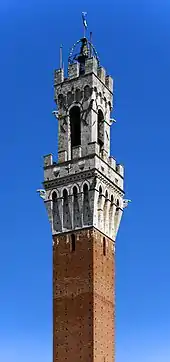The tower was built to be exactly the same height as Siena Cathedral as a sign that the church and the state had equal power.[nb 1]