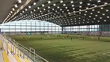 The main feature is a fully enclosed, international-sized artificial turf pitch engineered to the highest specifications available at the time. The dimensions of the playing field are the same as Celtic Park.[4] There is also a raised visitor area featuring a snack bar and bench seating for 700 spectators. There are three full-sized, FIFA-approved 2-star floodlit outdoor artificial pitches outside. The primary outdoor pitch was re-laid in late 2018 after a decade of constant use.[5]