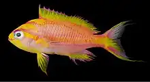 Tosanoides annepatrice is a species of reef fish from the subfamily Anthiinae part of the family Serranidae, the groupers and sea basses.[1] native to the Western Pacific Ocean around Palau and Micronesia and can be found in depths of 115โ€“150 meters.[1] Tosanoides filamentosus is one of six species that make up the genus Tosanoides.[2]
