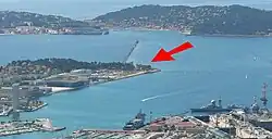 The Tour Royale is located at the southernmost point on the east side of the harbor entrance, near the base of the long jetty that now closes the harbor.