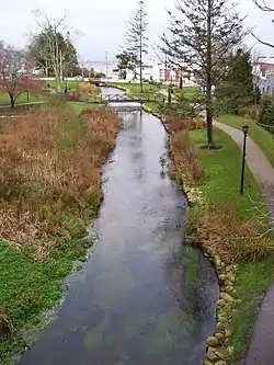 Town Brook is a 1.5-mile (2.4 km) stream in Plymouth, Massachusetts that provided drinking water to the Pilgrims who made their homes adjacent to the brook on Leyden Street in Plymouth. Town Brook's headwaters are the Billington Sea, a 269-acre (109 ha) freshwater pond. The brook passes through numerous small ponds, including Deep Water Pond and Jenny Pond. It also passes by the Plimoth Grist Mill and the Brewster Gardens before emptying into Plymouth Harbor. A nature trail runs along the entire length of the brook.