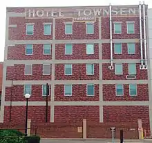 The hotel was built on the original location of the William Anthens pioneer homestead.[3] The hotel structure was built in 1923 by Charles H. Townsend, a prominent local settler and businessman, and was designed by architects Garbutt, Weidner & Sweeney. It was one of three grand hotels built in the downtown area of Casper and the only one still standing, the others being the Henning Hotel and the Gladstone Hotel. The Townsend served as an important hub in the early social and political life of Casper. It hosted the Casper Rotary Club and other local organizations, and was used by the USO and commissioned officers during World War II. By the 1970s, however, the hotel had deteriorated to the point that it was closed in 1982. It was added to the National Register of Historic Places on November 25, 1983.[4] The building was purchased by Realtor Betty Luker in the late 1980s, then sold to Jan Gray in 1998. In 2002 the hotel was bought by Townsend Properties LLC, which gutted the structure and removed all the asbestos in 2006.[5]