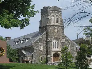 It is a gothic building built from the stone, concrete and aggregate supplied by the nearby Campbell quarry, which had its headquarters on the same block. The Harry Tyler Campbell company ultimately became the successful producers of Camel-Wite, an early whiting ingredient for paint, paper, rubber and plastic and Sakrete, a popular pre-mixed concrete formulation.[2]