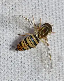 - ↑ Skevington, Jeff. (2013). "General Information on Toxomerus". Canadian National Collection of Insects, Arachnids and Nematodes.