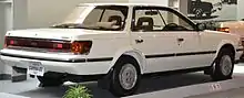 The Toyota Carina ED is a compact car manufactured by Japanese automaker Toyota in 1985 as a companion to the 1984 Carina sedan. It was positioned as the four-door Celica, with a similar focus on luxury found on larger Toyota hardtop sedans, like the Toyota Crown and the Toyota Cresta. It was the counterpart of the Corona EXiV. Its design sought to emulate the hardtop four-door coupé styling of large American and European sedans, resulting in a small, low cabin with longer front and rear ends. The ED's B-pillar stood up in the middle with no purpose other than to hinge the rear door on; it was not attached to the roof side of the cabin. The ED achieved huge sales in Japan, and other Japanese manufacturers introduced the Mazda Persona, Nissan Presea, and Mitsubishi Emeraude around the same time. "ED" is the initials of "Exciting" and "Dressy".[1] When the Carina ED was discontinued, the Toyota Brevis appeared for the market segment served by the Carina ED.