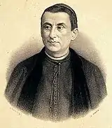 The Carlist version of Traditionalism was developed mostly by vast array of periodicals, headed by La Esperanza and its chief, Pedro de la Hoz.[43] The first complete Carlist lecture of Traditionalism – by some considered the first complete lecture of Traditionalism at all, preceding those of Balmes and Donoso – is supposed to be the 1843 work of Magín Ferrer.[44] Other authors who ventured to offer a more systematic lecture, like Vicente Pou,[45] did not make a major impact.[46] Discussing ongoing politics Carlist Traditionalism focused on negative points of reference,[47] opposing Liberalism and its incarnations like constitutionalism, electoral system, ongoing secularization of state, desamortización and centralization.[48] Concepts attributed to the claimants and named minimalismo and montemolinismo are political strategies rather than theories;[49] the most lasting contribution to Carlist Traditionalism of the era was a so-called double legitimacy theory.[50]