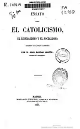 1851Ensayo sobre el catolicismo, el liberalismo y el socialismo[480]Juan Donoso Cortés