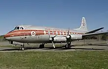 Trans-Canada Air Lines was the first North American airline to accept delivery of the Viscount.[2] Unlike piston engined aircraft (such as the Douglas DC-6 and the Lockheed Constellation) commonly flown by North American airlines, the Viscount was a quiet aircraft whose engines produced a minimum of vibration. Since the Viscount's Rolls-Royce Dart engines ran so much more smoothly than piston engines, engineers at Vickers believed propeller loss would be unlikely.[3]