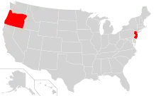 The US states of Oregon and New Jersey (shown in red) do not allow self-service.