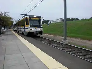 The Sacramento Regional Transit District provides light rail service in Sacramento and the surrounding communities. This Sacramento RT Light Rail system has three lines and 54 stations.[6] All the lines terminate in or travel through Downtown Sacramento, the central business district of Sacramento, and the main employment center for the metropolitan area. For commuters to downtown, light rail is a popular alternative to driving for various reasons. All light rail stations with a park-and-ride lot offer free parking (except for Cosumnes River College station, where the college operates and maintains the station), whereas formerly, many of the stations charged a fee for parking.[7] Annual ridership on the system is about 14 million.[8]