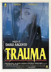 Trauma is a 1993 Italian giallo horror film directed by Dario Argento and starring Asia Argento, Christopher Rydell, Piper Laurie, and Frederic Forrest. Set in Minneapolis, Minnesota, it follows a troubled teenage girl who, with the help of a boyfriend, attempts to stop a serial killer who murdered her parents.