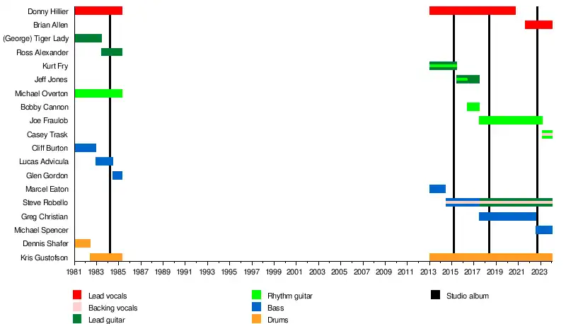 • Kris Gustofson – drums (1982–1985, 2013–present)